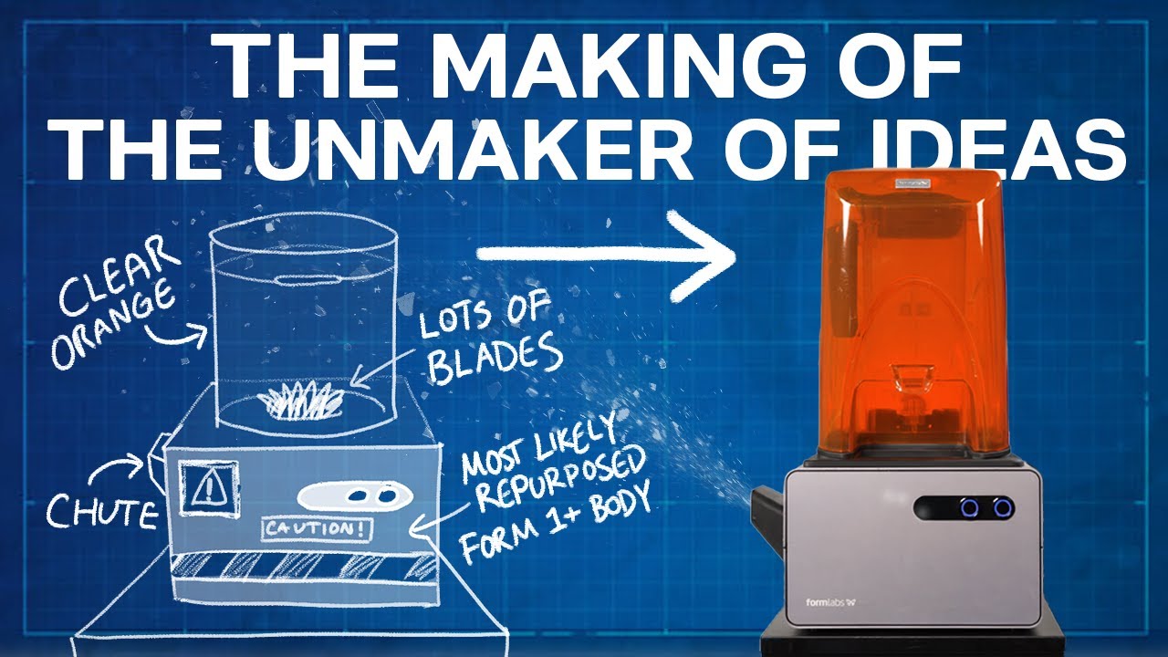 What started as an April Fools’ idea turned into a fully functional (and very real) machine designed to unmake ideas—with blender guts, a Form 1 shell, and a leaf blower for good measure.