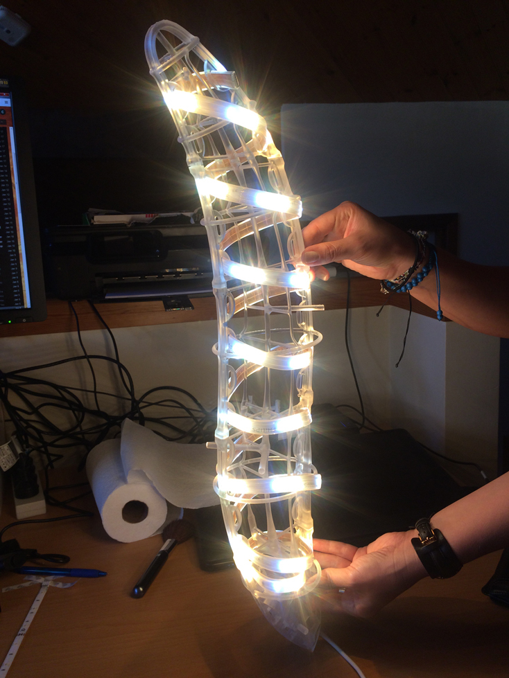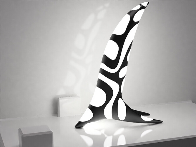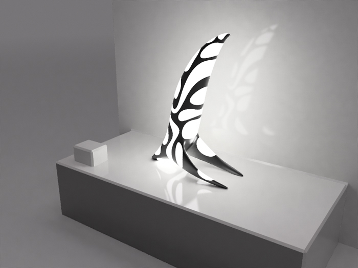 at this time it was more spiky alien spaceship lamp, but my girlfriend (and the producers) thought it looked a bit suspect! so i updated it & added some fins etc… I liked that it was more sculptural and suggestive of a sort of swimming / diving sort of shape / form people could make up their own mind what it was… anyhow…