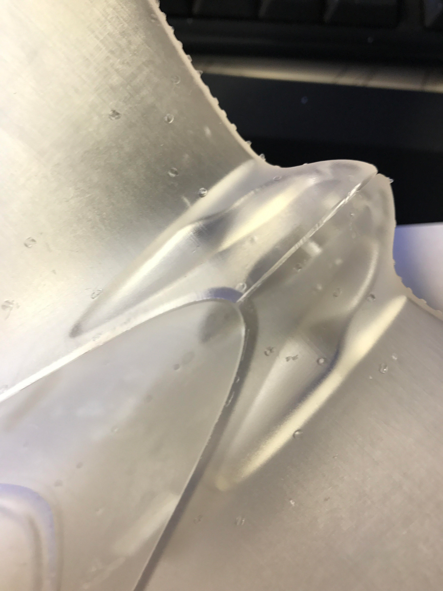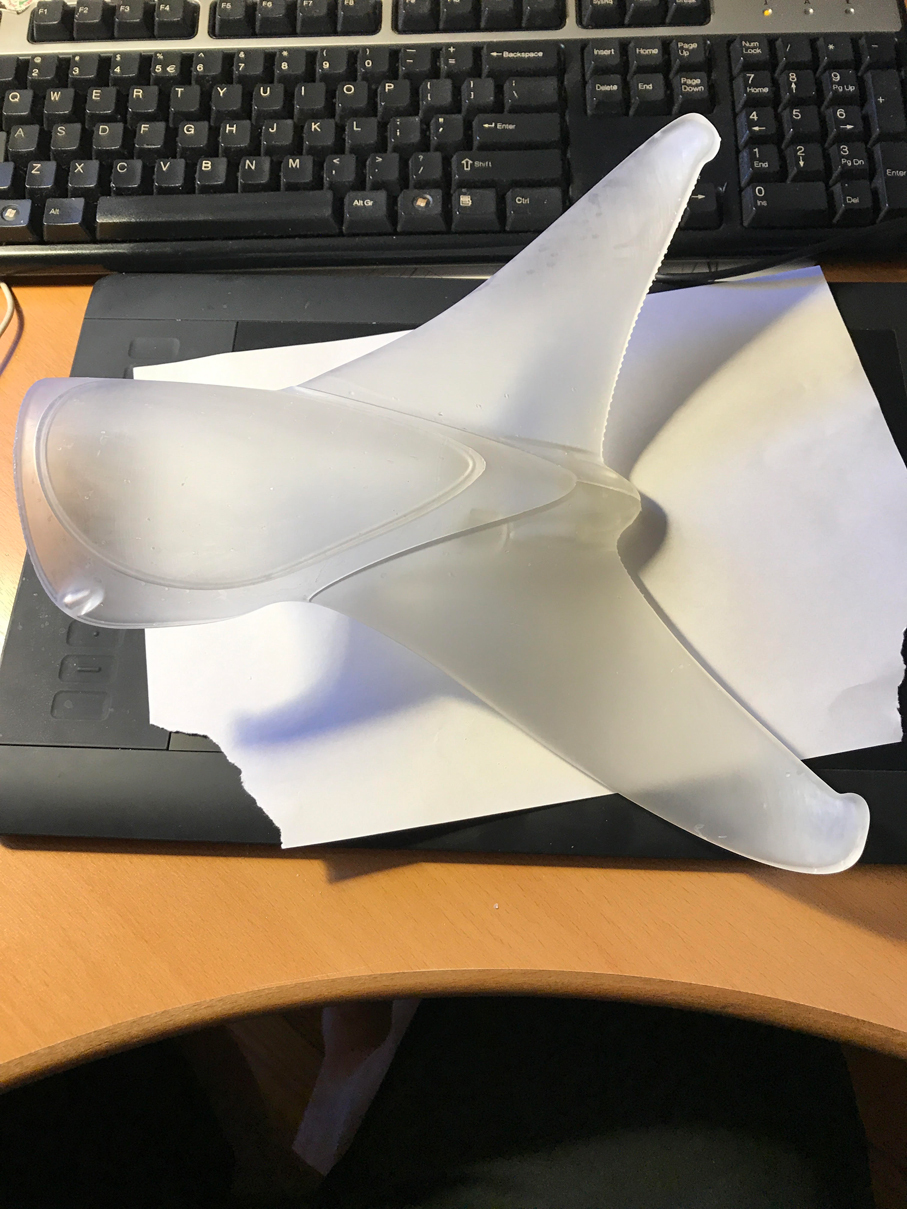 complex curvy detail view of tail fin join to tail, it fitted back together well without any glue (second time, first time it came out a bit warped)
