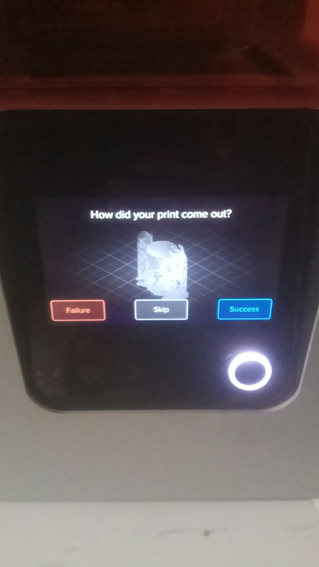 touch the screen where it says “Success”- it should take you back to the start print screen.