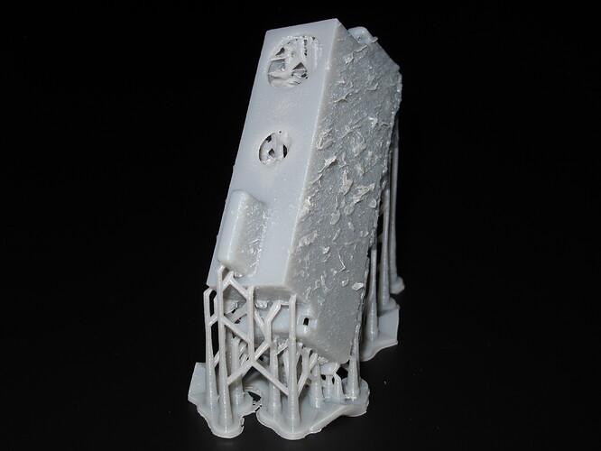 When you open a ticket with FL, they will undoubtedly suggest that the mirrors need cleaning. Do it. My printer printed flawlessly for months, dozens of prints, and one day on a particularly tall print it failed at the very end, in ways that look similar to your failures. I assumed it was the laser given the experiences of many on this forum. I couldn’t understand how dirty mirrors would go from working to not working mid-print. But I cleaned the mirrors anyway, both the main and galvos, and the printer pretty much is back to normal again…