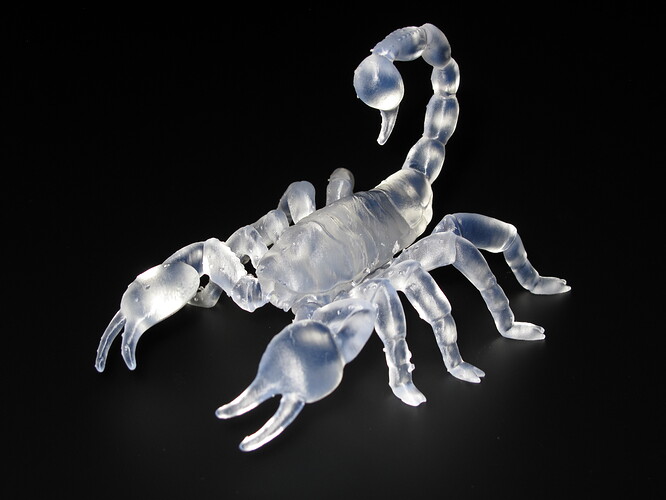 This scorpion was about the 5th print I ever did with my Form1+. The only ‘finishing’ I did was to clip off the supports with the side-cutters. Zero sanding. If I remember correctly this was 0.05 resolution.