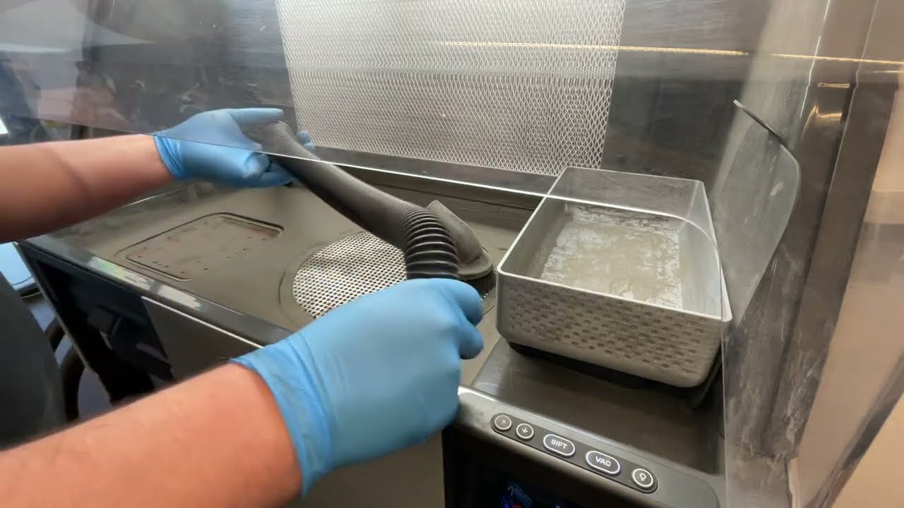 In our video, 100 components were printed in the chamber and unpacking took around 20-25 minutes. Manual brushing of each part, as we used to do, quickly takes 45-60 minutes.